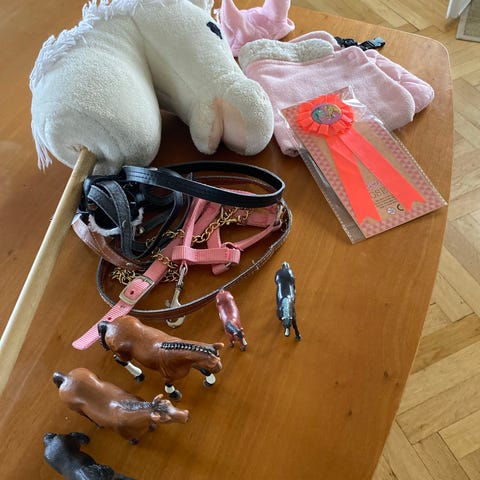 Kæpheste legetøj brun og sort plyshest på pind