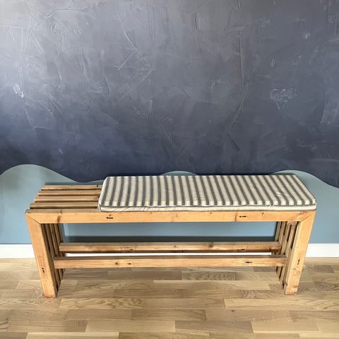 Entrémøbel med bænk og skohylde i metal og træ