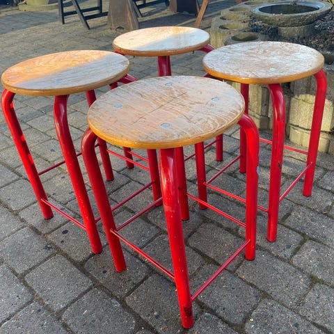 3 solide taburetterne på stål stel