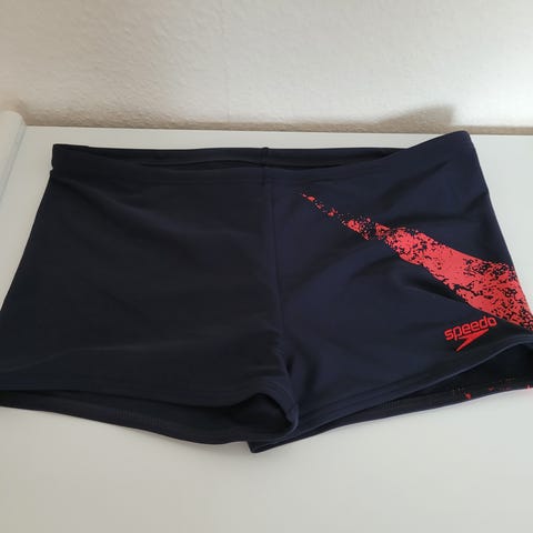 Speedo endureance badebukser, str. 164. sort med mønster. Er som nye, højst brugt en enkelt gang. Giv et bud.
