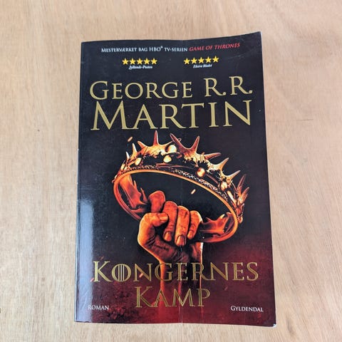 George R.R. Martin "En storm af sværd" bog på dansk. Paperback-udgave udgivet af Gyldendal. Romanen er en del af fantasy-serien "Game of Thrones/A Song of Ice and Fire". Velegnet til læsere af fantasy og længere romaner.