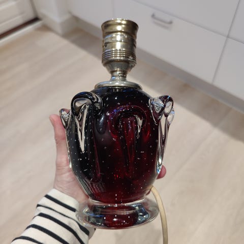 Flot design glas bordlampe fra 1960’erne h 25,5 cm b 15 i meget fin stand uden fejl og funktionsklar 375 kr