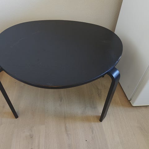 Rundt sofabord, afsyret eg med grønne kakler