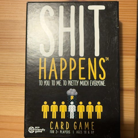 Shit Happens 50 Shades of Shit er et kortspil for voksne spillere fra 18 år og opefter. Spillet kan spilles af 2 eller flere deltagere. Kortene indeholder forskellige situationer, som rangeres efter en skala for ubehagelighed. Spillet leveres i æske med spillekort og engelsksproget regelhæfte. Velegnet som selskabsspil til voksne sammenkomster.