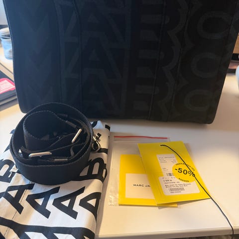 Marc Jacobs The Tote Bag taske til kvinde i stof. Tasken har to korte hanke og et rummeligt hovedrum. Den leveres med en aftagelig og justerbar skulderrem med Marc Jacobs-logo, så den kan bæres både i hånden og over skulderen. Velegnet til hverdagsbrug, arbejde eller studier, hvor der er behov for en praktisk og rummelig taske.