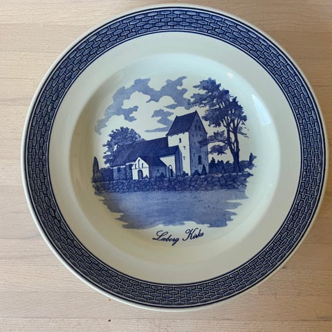 R C platte / tallerken med motiv af Klebæk højene uden skår.