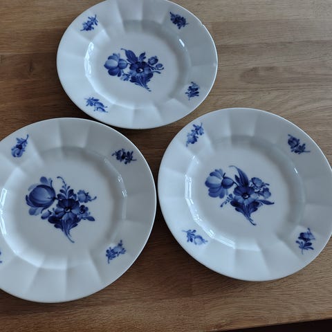 Royal Copenhagen Blå blomst. 2 the kopper og 3 underkopper. Ingen tider eller skår.