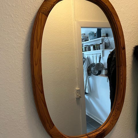 Det er ikke ikea men kunne ikke vælge ukendt. Ovalt spejl med træramme. Spejlet har en massiv træramme i fyrre træ og er beregnet til vægmontering. Bagsiden har beslag til ophæng på to led, vandret eller lodret. Velegnet til entré, soveværelse eller badeværelse, hvor der er behov for et større vægspejl med blød, oval form.