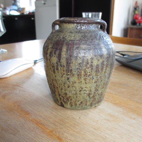 Stor håndlavet keramikskål med rustik glasur og flot spil i glasuren.