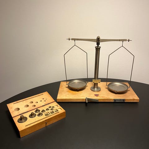 GAMMEL GULDVÆGT, MESSING/TRÆ, 100 år gl.