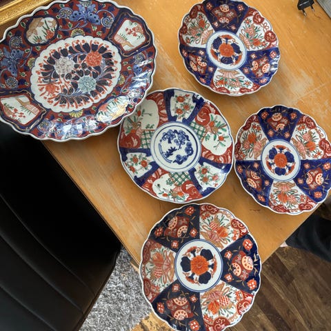 Kinesisk porcelæn tallerkener med flerfarvet orientalsk blomstermotiv