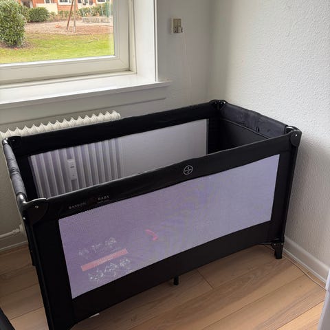 Basson baby rejseseng og Basson baby foldemadras i sort i rigtig god stand.