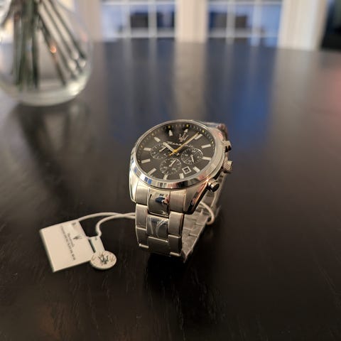 Jeg har dette Maserati competizione 43mm chr sort dial br ss til salg