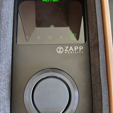 EV vægmonteret ladeboks til elbil med fastmonteret ladekabel. Enheden har front i sort med grønt lysindikatorfelt og hvid kabinetkant. På fronten er der display, som viser ladeinformationer som strømstyrke og batteristatus. Ladeboksen er beregnet til fast montering på væg og leveres med tilhørende holder til ladestikket. Velegnet som hjemmelader eller fast ladepunkt til elbil, hvor der ønskes en kompakt løsning med integreret kabel.