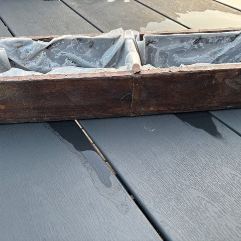 Tre støbeforme til at lave trædesten. Billede tre og fire viser, hvordan det færdige resultat ser ud.