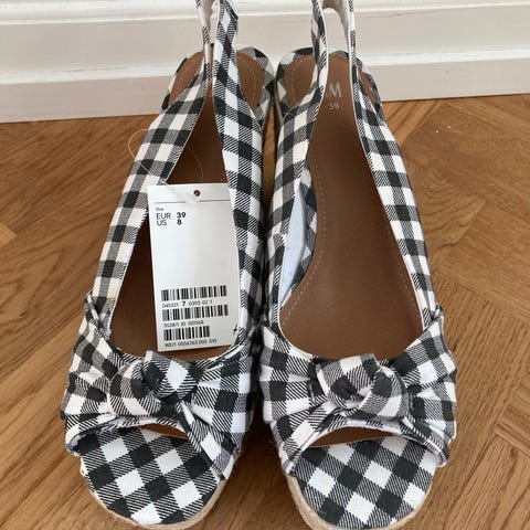H&M højhælede sandaler i str. 39. Aldrig brugt før. Sandalerne er sorte med tynde remme og firkantet snude. Blokhæl giver stabilitet ved gang. Velegnet til brug ved både hverdag og mere formelle anledninger.