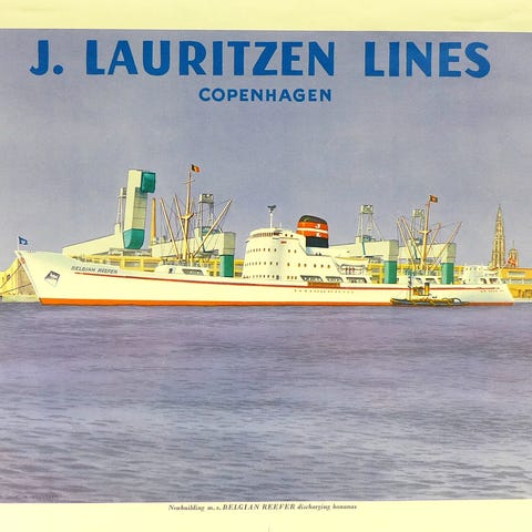 Vi har 3 tryk af J. Lauritzen-skibe fra denne periode på lager, alle fra originale malerier af H. Schøsler-Pedersen. Skibene er Perla Dan, Thora Dan og Belgian Reefer. Tilda Dan, Anita Dan og Mexican Reefer er solgt. Se venligst vores andre annonceringer her på DBA.