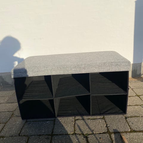 Isabella skohylde. Fine ruminddelinger. Kan justeres i bunden. Målene står på billeder. God til campingvognen. Ny pris 800,-