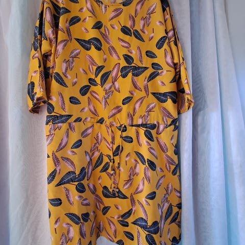 Kjole til hverdag og fest str. 38 - 40 /M. Multicolor i farverne blå, gul og hvid.