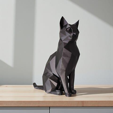 Håndlavet vægdekoration udformet som et kattehoved i filt. Motivet forestiller en langhåret kat med grå pels. Dekorationen er udført i filtmateriale og monteret på en mørk baggrund, velegnet til ophæng på væg som tekstilbillede eller kunsthåndværk i hjemmet.