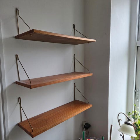 Super flotte vintage teak-finer fra 1950'erne. Hylder i rigtig flot udførsel.