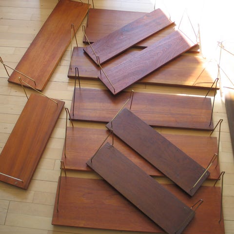 2 stk. vintage teak-finer hylder l:100 cm, d:18 cm h:23 cm