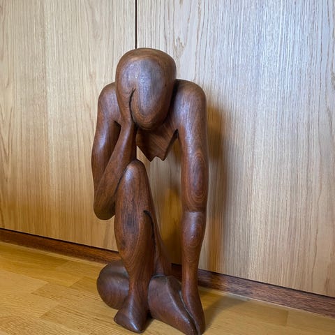 Skøn træfigur “tænkeren” hel og intakt.