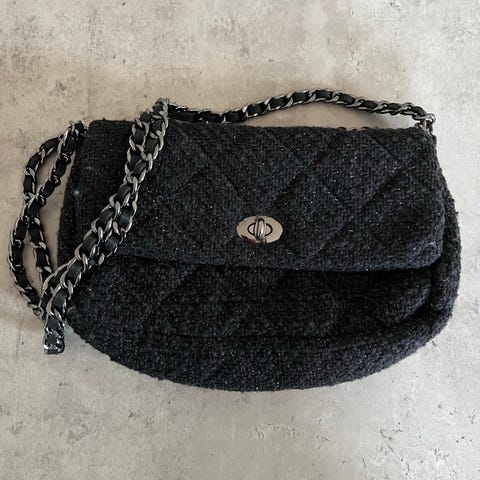 Tags: taske, tweed, skuldertaske, kæde.