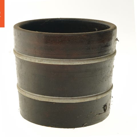 Denne keramiske plantepotte er rundt formet og brun i farven. Den har en glansfuld indvendig overflade, synlig på toppen og bunden af potten. Potten er kompakt, med en høj på cirka 10 cm, hvilket gør den velegnet til mindre planter eller som del af en dekoration. På indersiden er der et synligt stempel eller mærke, men produsentens brandnavn eller logo er ikke tydeligt. Potten kan anvendes indendørs og har et klassisk design der passer ind i mange indretninger.