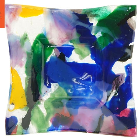 Flerfarvet glaskunst fad (str. 20x3 cm)
