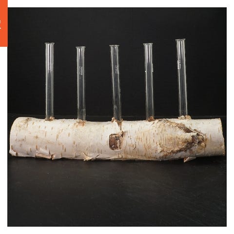 Unik blomsterholder i birketræ med reagensglas (str. 35x21 cm)