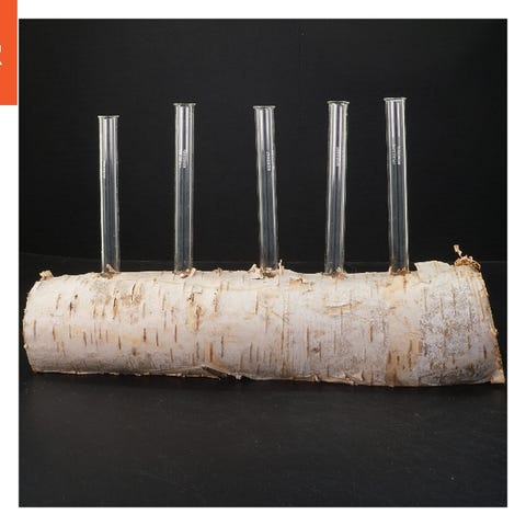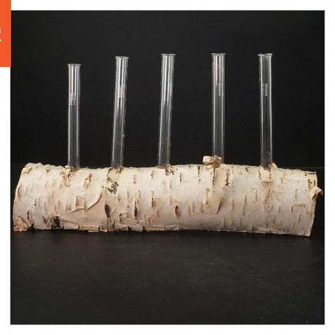 Glasrørene er jævnt fordelt langs træet, hvilket fremhæver birkens naturlige tekstur og giver et elegant udseende. Perfekt til at tilføje en naturlig accent til ethvert rum.