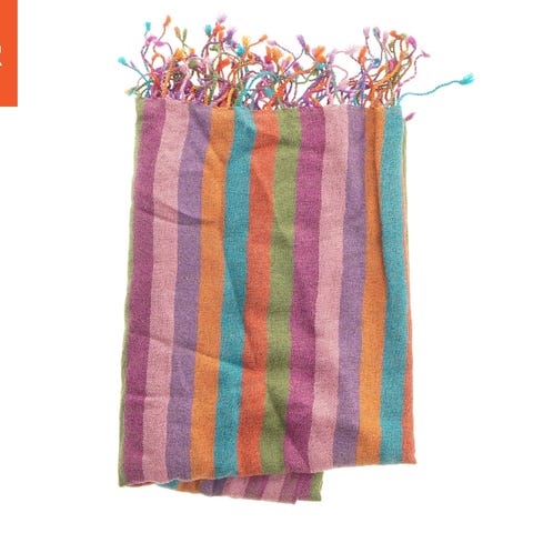 Rektangulært vævet tæppe med geometrisk mønster frynser (str. 256x91 cm)