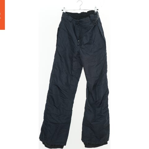Et par lilla snebukser med et abstrakt mønster i lyserøde og mørkere lilla nuancer. Bukserne har en elastisk talje, knaplukning og forstærkninger på knæene og bunden af benene.