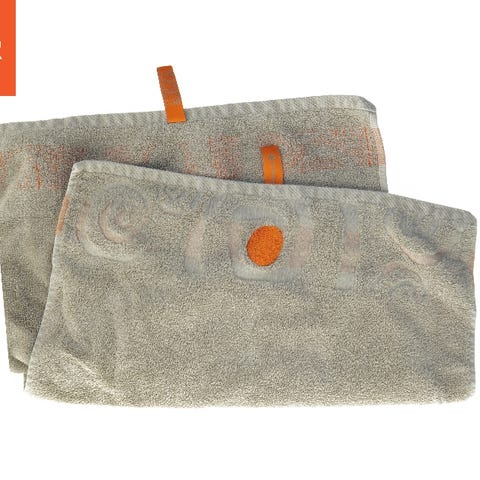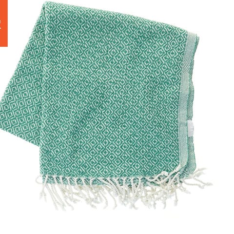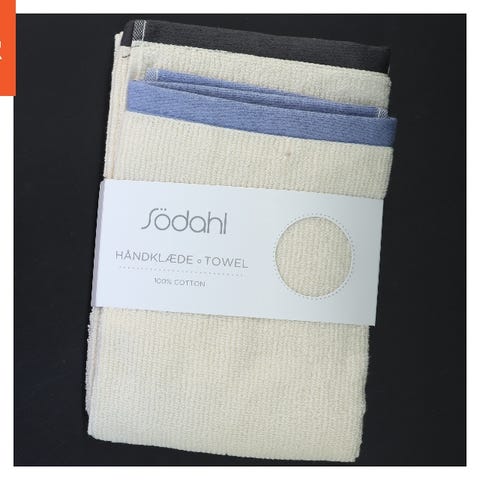 Dette er et håndklæde måler 45x91 cm, lavet af absorberende materiale med en dekorativt mønster. Det er velegnet til badeværelset eller køkkenet.