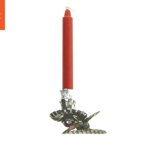En antik, industriel stillysestage med to arme. Den er lavet af metal og står på en rund base. Lysestagen er designet til at holde to stearinlys og måler 36 cm i højden. Den har en patina, der giver den et rustikt udseende og er lavet i et enkelt, elegant design.