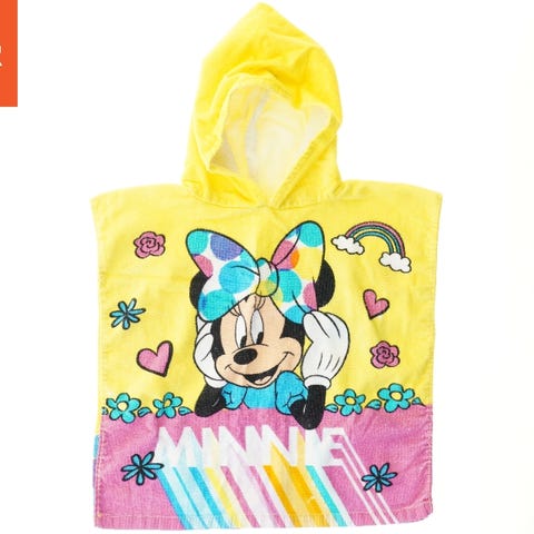 Dette er en håndklæde poncho til mindre børn med en hætte og et tryk af karaktererne Anna og Elsa fra Disney's Frozen. Ponchoen har en primær farve af lyserød, med lyserøde og hvide detaljer, og er ideel til brug efter badning eller svømning. Størrelsen er 69x50 cm.
