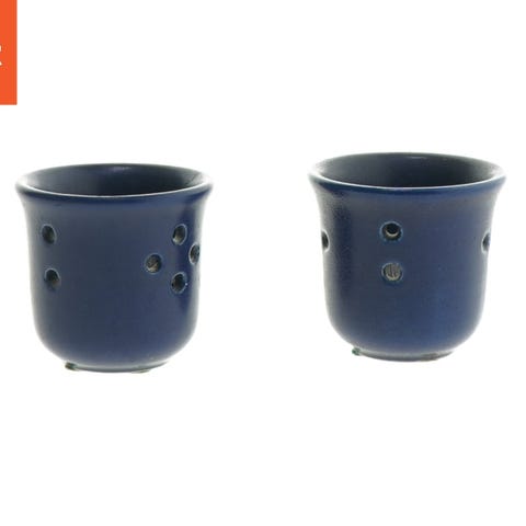 To blå keramik lysestager fra Dorte Visby Keramik. Fremstår håndlavet og med unik glasur. De er lavet af keramik og har en diameter på 11 cm samt en højde på 10,5 cm. Stagerne har en glaseret overflade med individuelle mønstre, der giver dem et distinkt og kunstnerisk udseende. Det er tydeligt, at de kan anvendes til standard koniske lys.
