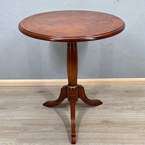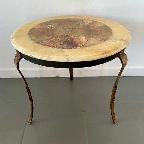 En vintage rundt sidebord i dansk design fra 1950’erne til 1960’erne med farverig jagtscen print, lavet af træ og komposit, diameter 79 cm, højde 79 cm ( underside 44 cm), vægt 9 kg, oprindelse Storbritannien, i god stand med små alders- og brugsspor. Klik på den blå "gå til varen" knap, for at købe eller byde på denne vare. Den samlede pris vil blive vist inden du afgiver dit bud.