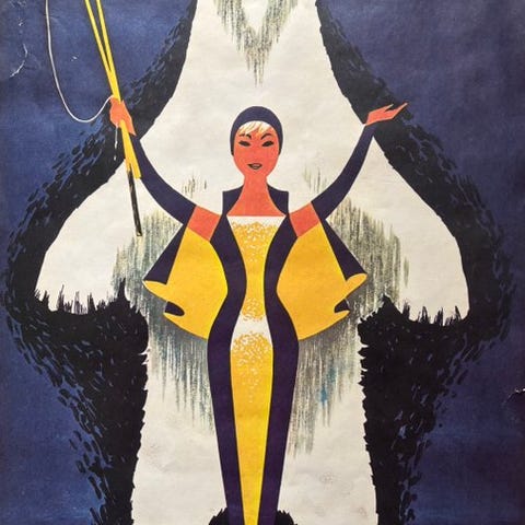 Fortryllende plakat for Casino de Paris dedikeret Mistinguett, den berømte ikon fra det parisiske music-hall, lavet af Zig i 1930.