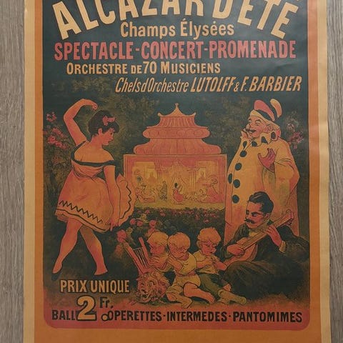 Ekstraordineret fransk reklamemanifest for “La Roue Élastique Roussel”, berømt reklame dedikeret til den elastiske hjul, symbol på fremskridt og frihed i Frankrig i begyndelsen af 1900-tallet.