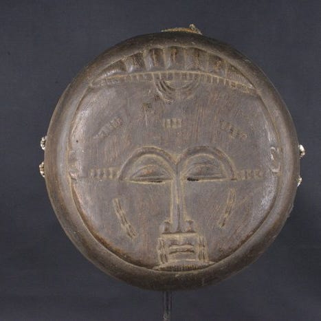 Baoulé-pully fra Elfenbenskysten, træ, autentisk/original, oprindelse Baoulé-kulturen, leveres med stativ, mål H 135 mm (inkl. stativ 10 mm), B 60 mm, D 3 mm. Klik på den blå "gå til varen" knap, for at købe eller byde på denne vare. Den samlede pris vil blive vist inden du afgiver dit bud.