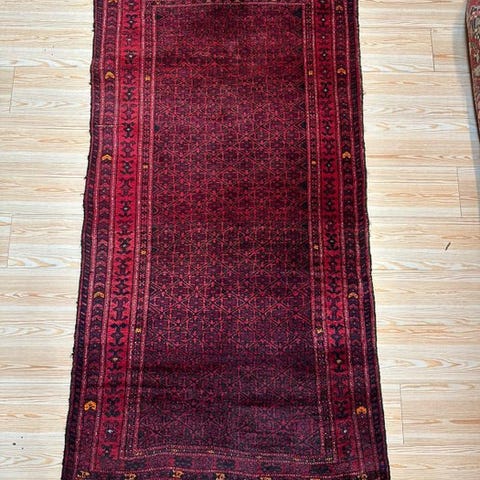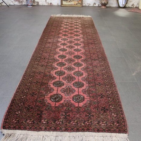Oprindelse Afghanistan; model: vintage orientalsk håndknotet tæppe-løber, ca. 1920, mål 112 × 200 cm, uld på tekstilgrundlag, i meget god stand. Klik på den blå "gå til varen" knap, for at købe eller byde på denne vare. Den samlede pris vil blive vist inden du afgiver dit bud.