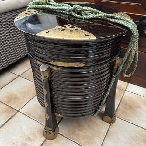 Dette er et traditionelt japansk kiseru-rygesæt bestående af en udskåret træboks til opbevaring af tobaksblade og en klassisk kiseru-pibe. Sådanne sæt blev almindeligt brugt i Japan fra Edo-perioden og fremefter og blev værdsat som personlige tilbehør, der afspejler både prakti`kalitet og håndværk.