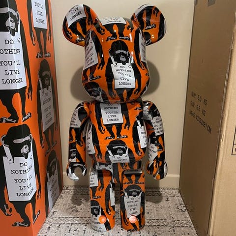 På auktion er et sjældent Medicom Toy BE@RBRICK Highwayman 100% & 400% sæt, officielt licenseret og stærkt samlerobjekt. Dette begrænsede udgave-sæt indeholder det ikoniske Highwayman-design gengivet i den karakteristiske BE@RBRICK-bjørneform, hvilket gør det til et fremtrædende stykke for samlere af designerlegetøj og popkultur-samlergenstande.