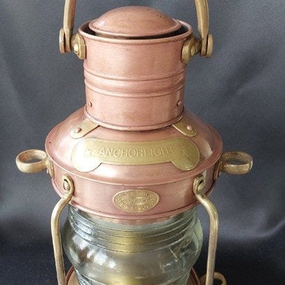 Det er en maritim lampevarmer, oprindeligt anvendt både til belysning og til varmeproduktion i maritime omgivelser, hvilket gør den til et teknisk og dekorativt stykke med historisk værdi.