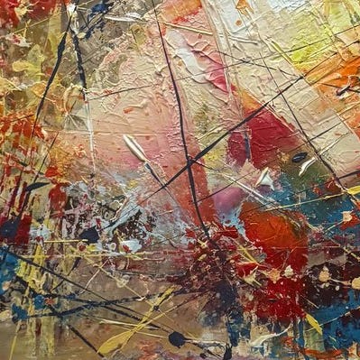 Unikt maleri, indrammet, blandede teknikker.
