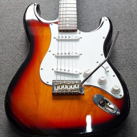 En Stratocaster-guitar fra 2000 fra Indonesien, i god fysisk stand og testet og spilbar. Klik på den blå "gå til varen" knap, for at købe eller byde på denne vare. Den samlede pris vil blive vist inden du afgiver dit bud.