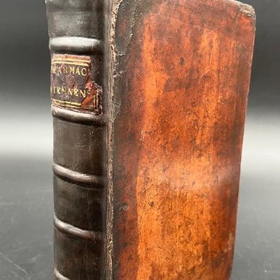 Sjælden tiende udgave udvidet (første gang i 1728) af denne berømte opskriftssamling og lægevidenskabs-farmakopæen. Det drejer sig om en omfattende, velovervejet liste over de medicinske formuleringer, der blev anvendt på den tid, med detaljerede instruktioner om hvordan de blandes og deres dosering. Også meget interessant er