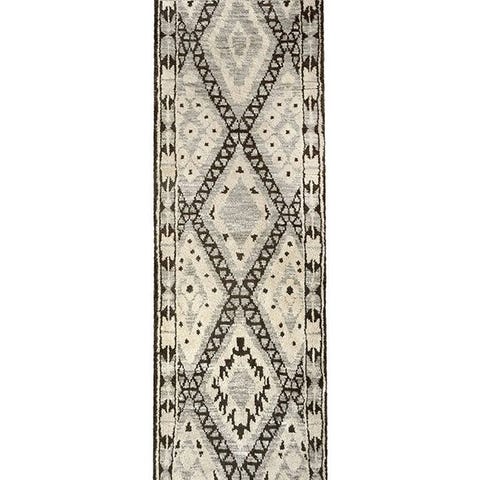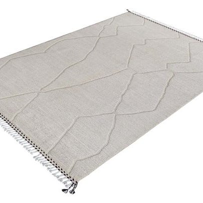 Et moderne håndknyttet Berber-tæppe, inspireret af tidløse enkeltheder i traditionelle nomademønstre. Designet minder om naturlige stenstrukturer og imponerer med sin harmoniske forening af lyse og grå nuancer – perfekt til moderne og minimalistiske boliger.